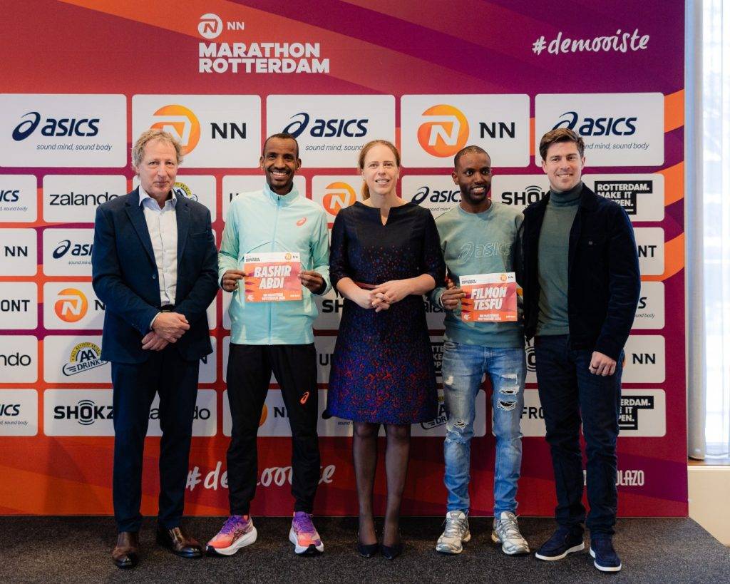 Burgemeester Carola Schouten heeft maandag 5 januari de eerste twee toplopers van de NN Marathon Rotterdam aangekondigd: tweevoudig winnaar Bashir Abdi uit België en Filmon Tesfu, de op één na beste Nederlandse marathonloper ooit. Zij staan op zondag 12 april aan de start.